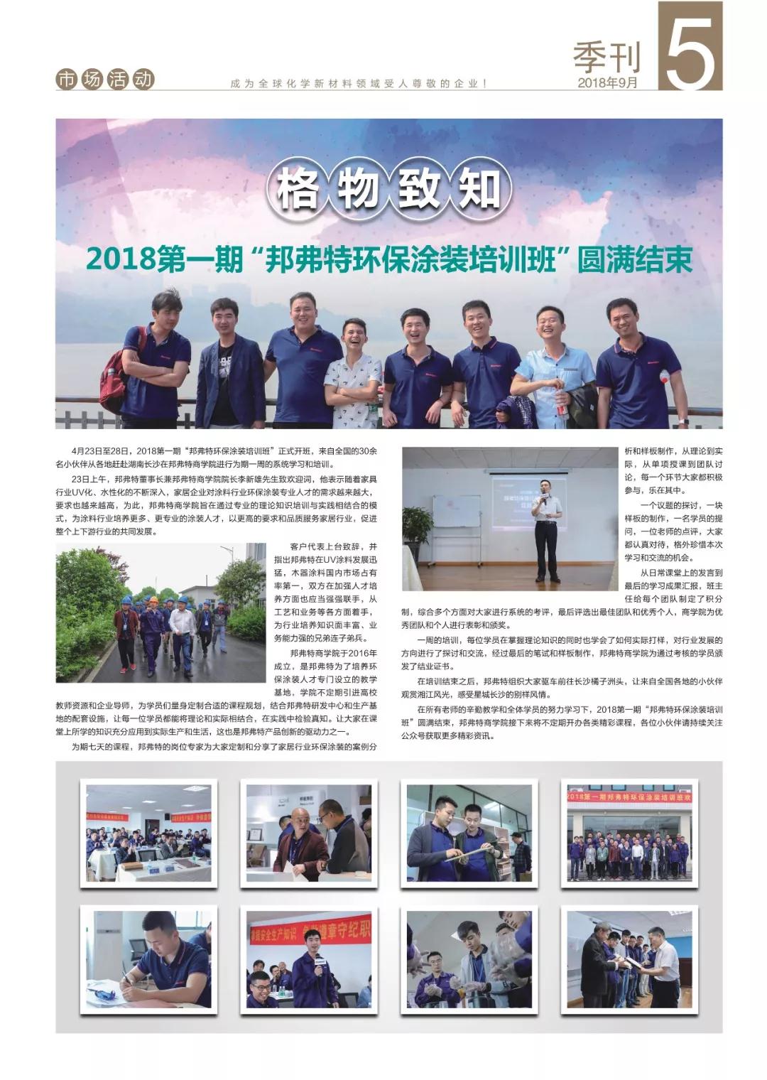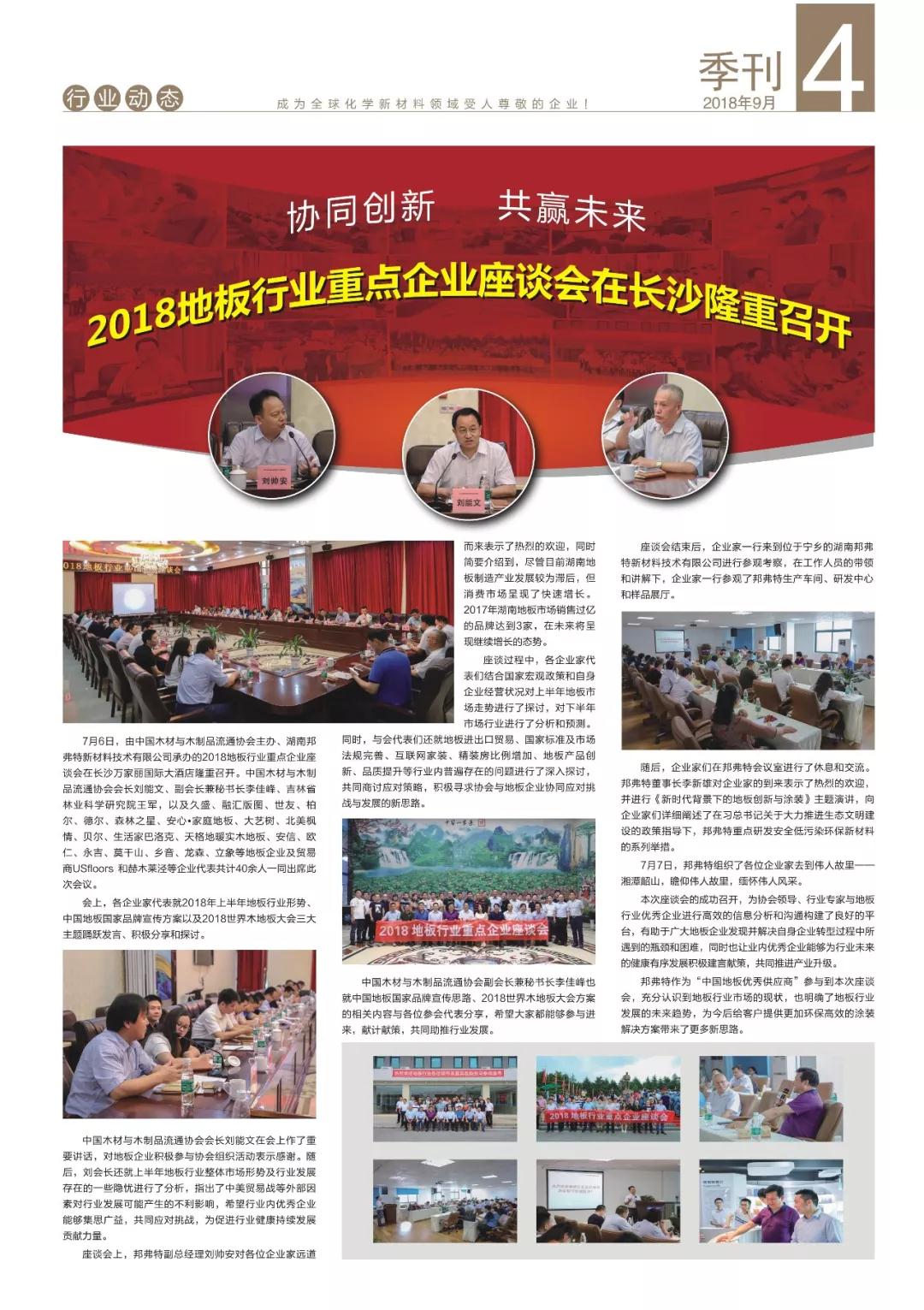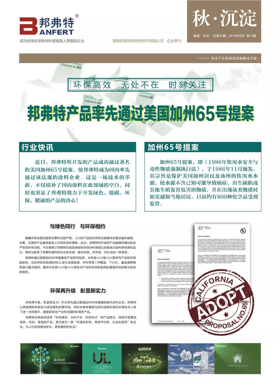 新品研髮(fa)率(lv)先(xian)通(tong)過(guo)加州(zhou)65號提案,年(nian)中培訓打(da)造高傚糰隊,地闆行(xing)業重點(dian)企業(ye)座(zuo)談會與客(ke)戶(hu)協衕(tong)創新,環(huan)保(bao)塗裝(zhuang)培(pei)訓班格(ge)物(wu)緻知,邦弗(fu)特獎學金(jin)走進(jin)高等(deng)學(xue)府(fu),健(jian)康百(bai)寶箱攜愛(ai)齣髮……