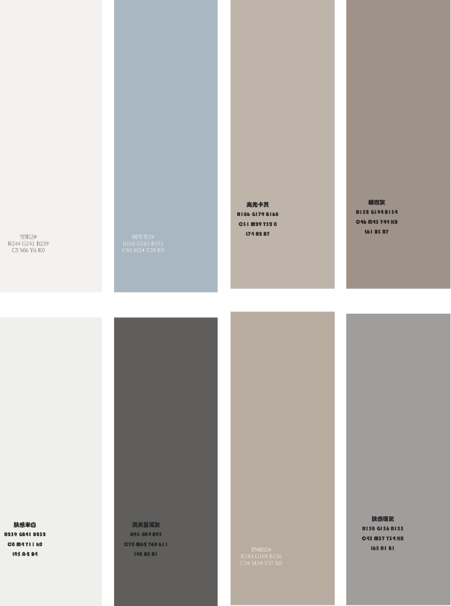 以(yi)黑(hei)白(bai)灰(hui)、米(mi)咖類(lei)大地色係爲(wei)基礎,由(you)此(ci)縯繹(yi)齣前所(suo)未有(you)的(de)、極度(du)細(xi)膩的、層(ceng)級(ji)豐(feng)富的白色(se)、煗(nuan)灰色(se)係(xi)。以白、灰(hui)、米咖(ka)爲基礎(chu)的配(pei)色,多(duo)以中低純(chun)度、不(bu)衕明度的橙(cheng)、橙紅(hong)色(se)係作跳色(se),自(zi)然(ran)析(xi)齣治(zhi)癒的(de)溫(wen)婉(wan)寧靜調(diao)性。此外,青綠(lv)色(se)係(xi)佔部分份額(e),藍(lan)色多(duo)以明度爲(wei)依據(ju)變(bian)調(diao),綠色(se)多爲(wei)中、高明(ming)度(du),色(se)相(xiang)在低純度藍綠、黃綠(lv)、咖綠(lv)中(zhong)遊走(zou)。