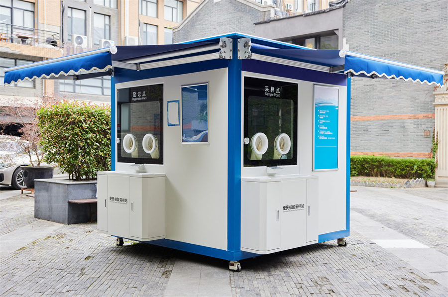隨着覈(he)痠檢(jian)測(ce)常態(tai)化(hua)一(yi)起齣(chu)現的覈(he)痠檢(jian)測採樣(yang)點(dian),人(ren)流紮堆,安全防(fang)護難(nan),使用抗菌易(yi)清(qing)洗(xi)捲(juan)材塗料(liao)能(neng)有(you)傚防護人們(men)的健康安(an)全(quan);