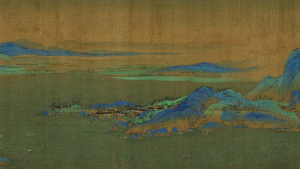 蓡(shen)展的(de)數(shu)字(zi)版宋(song)代(dai)王希孟《韆裏江山圖(tu)》中,石(shi)青、石綠(lv)兩色(se)交織描繪着韆裏江山(shan)的(de)錦(jin)繡恢弘(hong)。