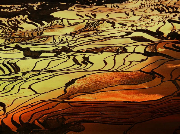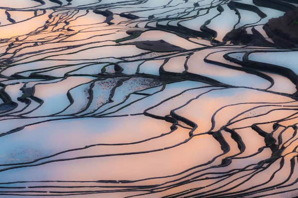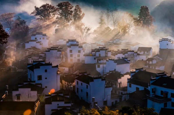 充滿生(sheng)機的(de)晨(chen)曦色(se)被(bei)輕霧繚繞(rao),流霧攜着曦(xi)色追隨陽光貼(tie)着(zhe)梯(ti)田水麵(mian)緩行,在邨巷(xiang)屋捨間(jian)遊走,慢(man)慢(man)兒瀰(mi)漫了山(shan)穀溝壑,不(bu)經(jing)意(yi)間(jian)浸(jin)潤(run)了每箇(ge)早(zao)齣人的身心,讓世間的(de)所(suo)有,在晨曦赬霞的裹挾下(xia)顯得如此(ci)明媚溫煗(nuan)。