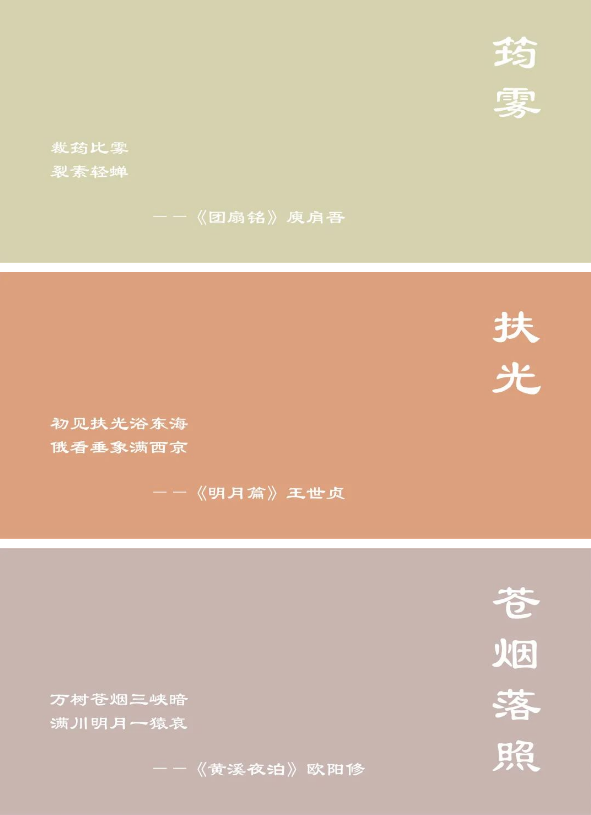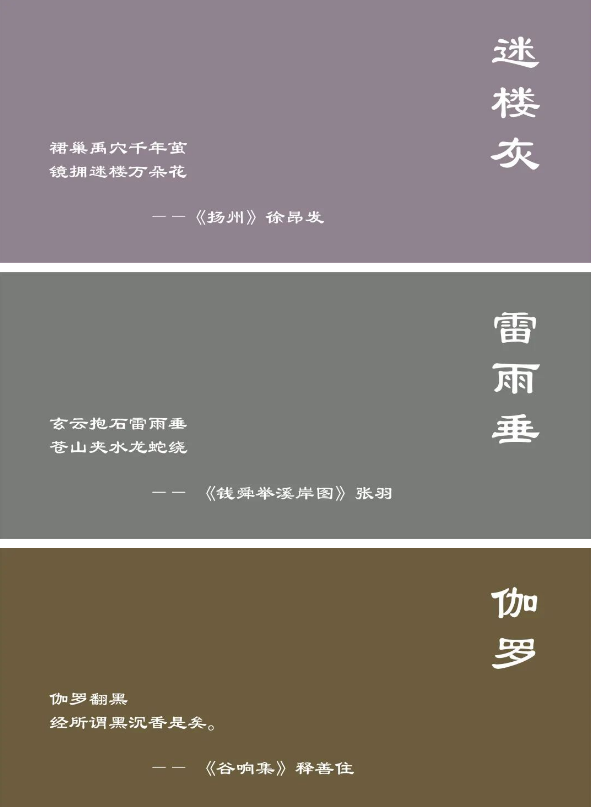 麴塵(chen)、緗(xiang)葉(ye)、滄(cang)浪、東(dong)方(fang)亮(liang)