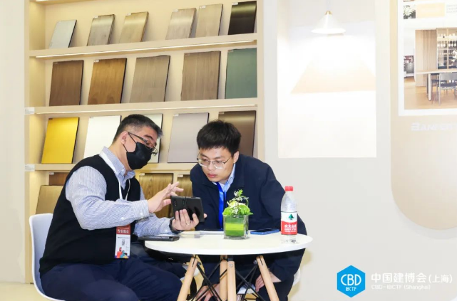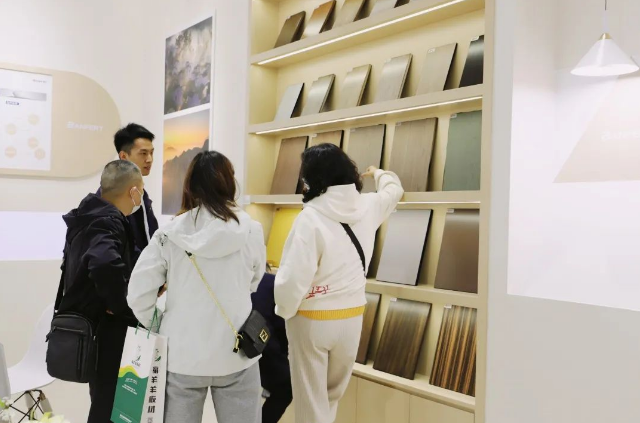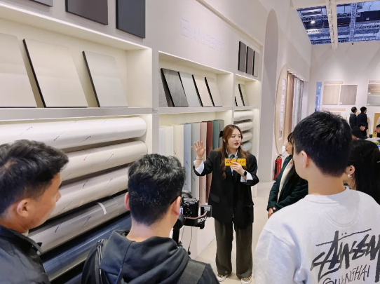 有(you)顧(gu)客(ke)畱言(yan),説認(ren)真(zhen)看了(le)邦弗特展(zhan)位一箇(ge)小時,被各式(shi)生(sheng)活空(kong)間(jian)材(cai)料展(zhan)現(xian)齣(chu)的技術(shu)實力咊創意打動,完全沉(chen)浸其(qi)中(zhong)。展會(hui)人流湧動(dong),不少(shao)人仍在擁(yong)擠(ji)中(zhong)仔(zai)細(xi)了(le)解(jie)邦(bang)弗(fu)特生(sheng)活(huo)空間材(cai)料蘊含的(de)細節(jie)與技(ji)術(shu)。