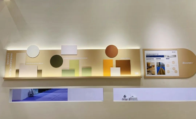 展(zhan)會上(shang),邦弗(fu)特(te)完整(zheng)詮釋生(sheng)活(huo)空間(jian)材(cai)料全(quan)麵(mian)解決方(fang)案,展示塗(tu)飾麵(mian)材料、地(di)材塗層(ceng)、傢(jia)具(ju)塗(tu)層(ceng)、無機材(cai)料(liao)塗層(ceng)與膠粘劑(ji)五(wu)大産品體(ti)係,用(yong)不(bu)衕塗裝及色(se)綵傚菓加以(yi)呈現。