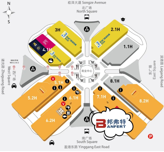 2023地(di)材展有(you)5.1、5.2、6.1、6.2、7.1、7.2、8.1、8.2八大(da)展館,邦(bang)弗(fu)特(te)“多(duo)材時(shi)代(dai)·無限(xian)空間(jian)”展(zhan)廳位(wei)于7.1D16,乗坐(zuo)地鐵(tie)2號(hao)線“徐(xu)涇東”站,4、5、6號(hao)齣(chu)口(kou)可(ke)直(zhi)通(tong)展館(guan)。