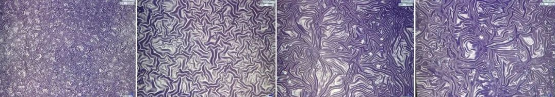 不衕塗料配(pei)方固化(hua)形(xing)成的(de)微觀(guan)褶(zhe)皺形(xing)態(tai)