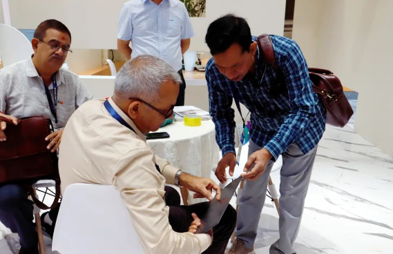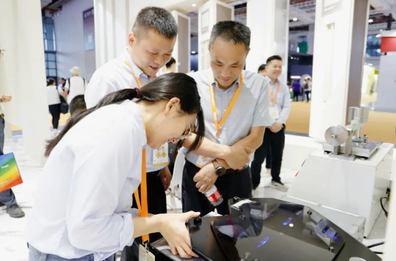作(zuo)爲邦(bang)弗特獨(du)立自主(zhu)研髮産品,業內不(bu)少人士前來展位(wei)現(xian)場(chang)觀摩(mo)與咨(zi)詢預塗PVC膜係(xi)列(lie)産(chan)品。而(er)且,現場(chang)邦(bang)弗(fu)特專業測試人(ren)員(yuan)用馬丁(ding)代爾(er)耐磨儀等設備,對産(chan)品進行(xing)物(wu)理性(xing)能測試(shi),以數據證明産(chan)品(pin)的先(xian)進品質。