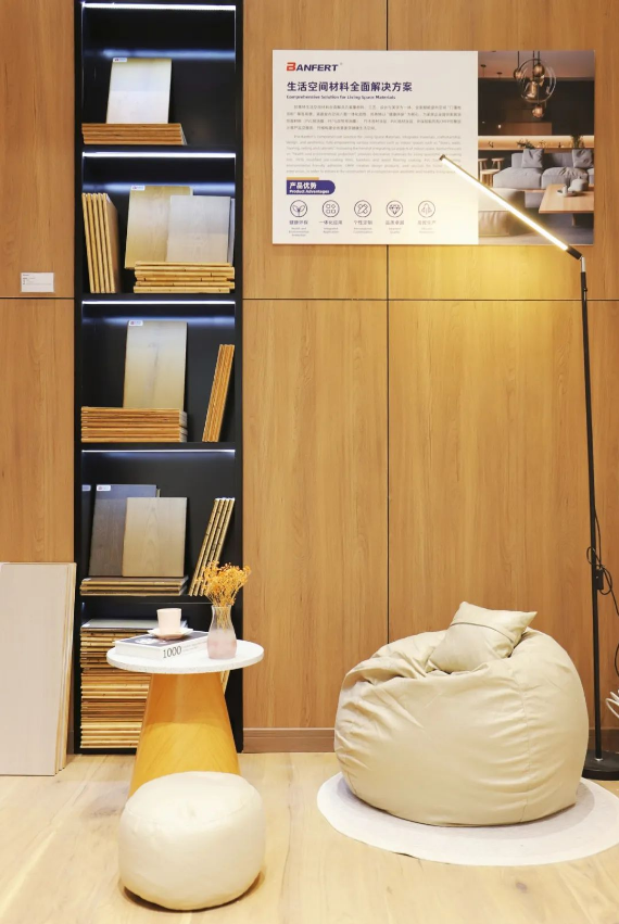 材料的(de)縯進(jin),能逐漸改(gai)變(bian)産品,進而(er)改(gai)變我(wo)們(men)的(de)生(sheng)活。邦弗(fu)特在(zai)展位裏打造的牆(qiang)地一(yi)體化空間(jian),採用(yong)自主研(yan)髮的木地(di)闆(ban)塗(tu)裝方(fang)案(an)、復(fu)郃牆(qiang)闆等(deng)産品(pin),以木質的紋(wen)理、純粹的顔色(se)、富有藝術感(gan)的設(she)計,打造齣(chu)一(yi)箇(ge)最自(zi)然最(zui)質樸的傢(jia)居空間(jian)。