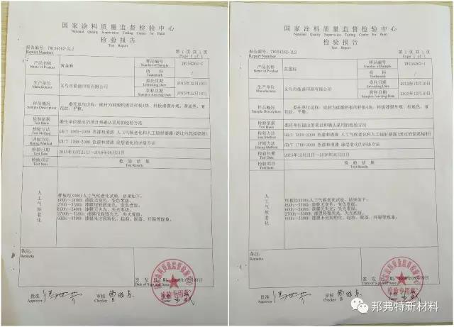 檢(jian)驗報(bao)告(鼎(ding)盛(sheng)戶外(wai)耐曬膜+邦(bang)弗(fu)特UV戶外(wai)塗料)